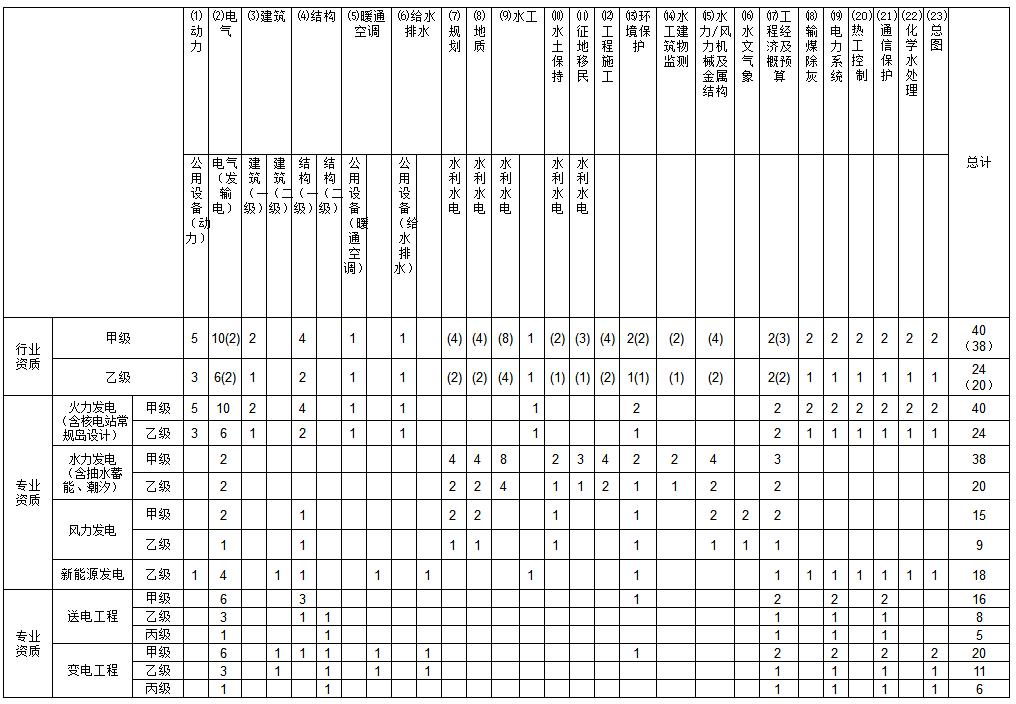 4.行业资质专业人员的配备,括号内的数字为水力水电设计企业申请行业资质对主要专业技术人员配备的要求。
