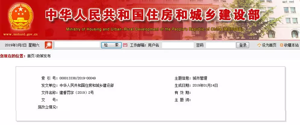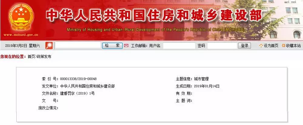 住建部最新公布时间:2019年2月21日