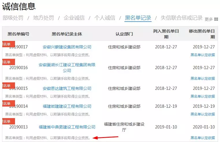 资质升级弄虚作假企业黑名单